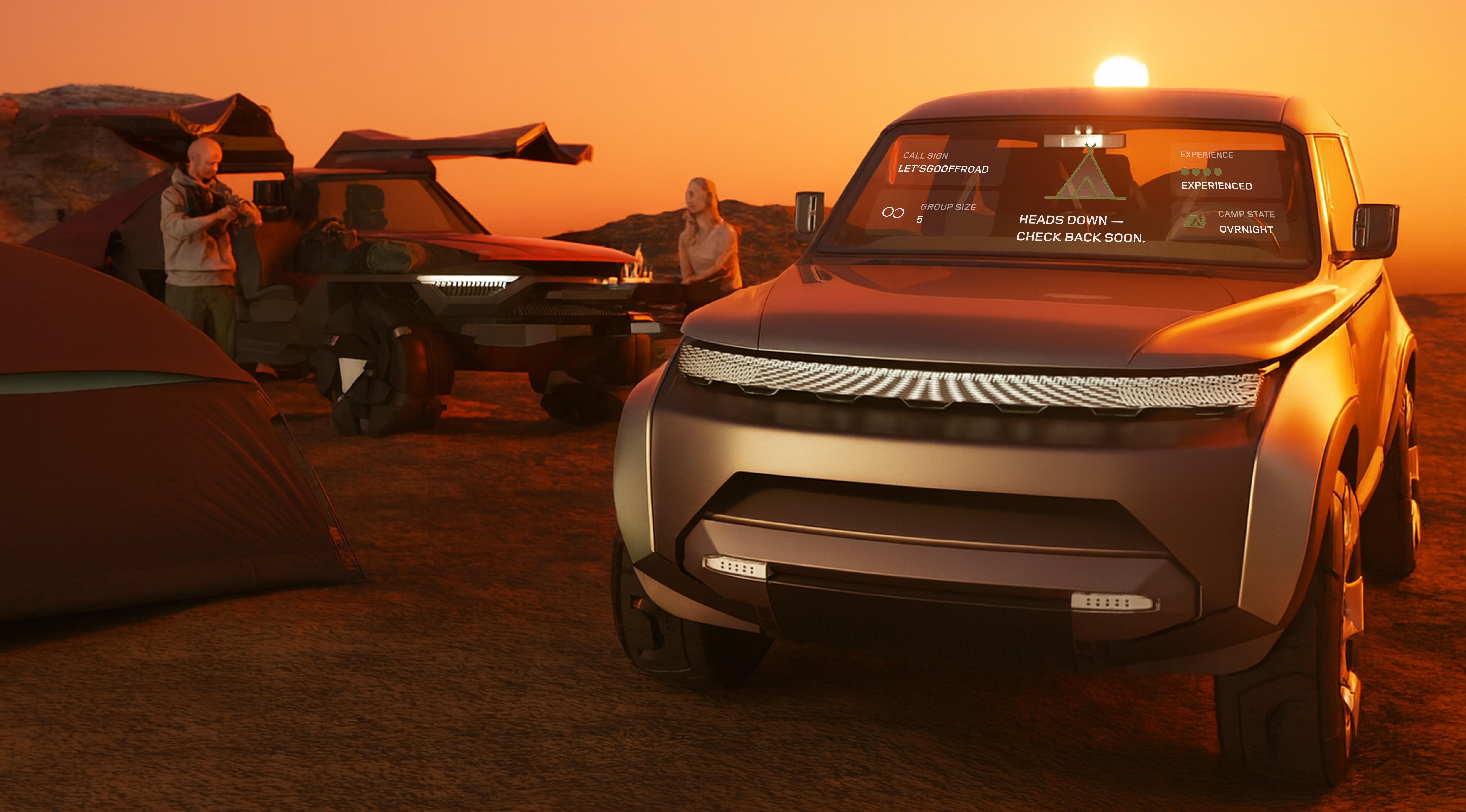 This allows driver to select their social status with a display on the windshield to connect with other drivers at the campsite.
