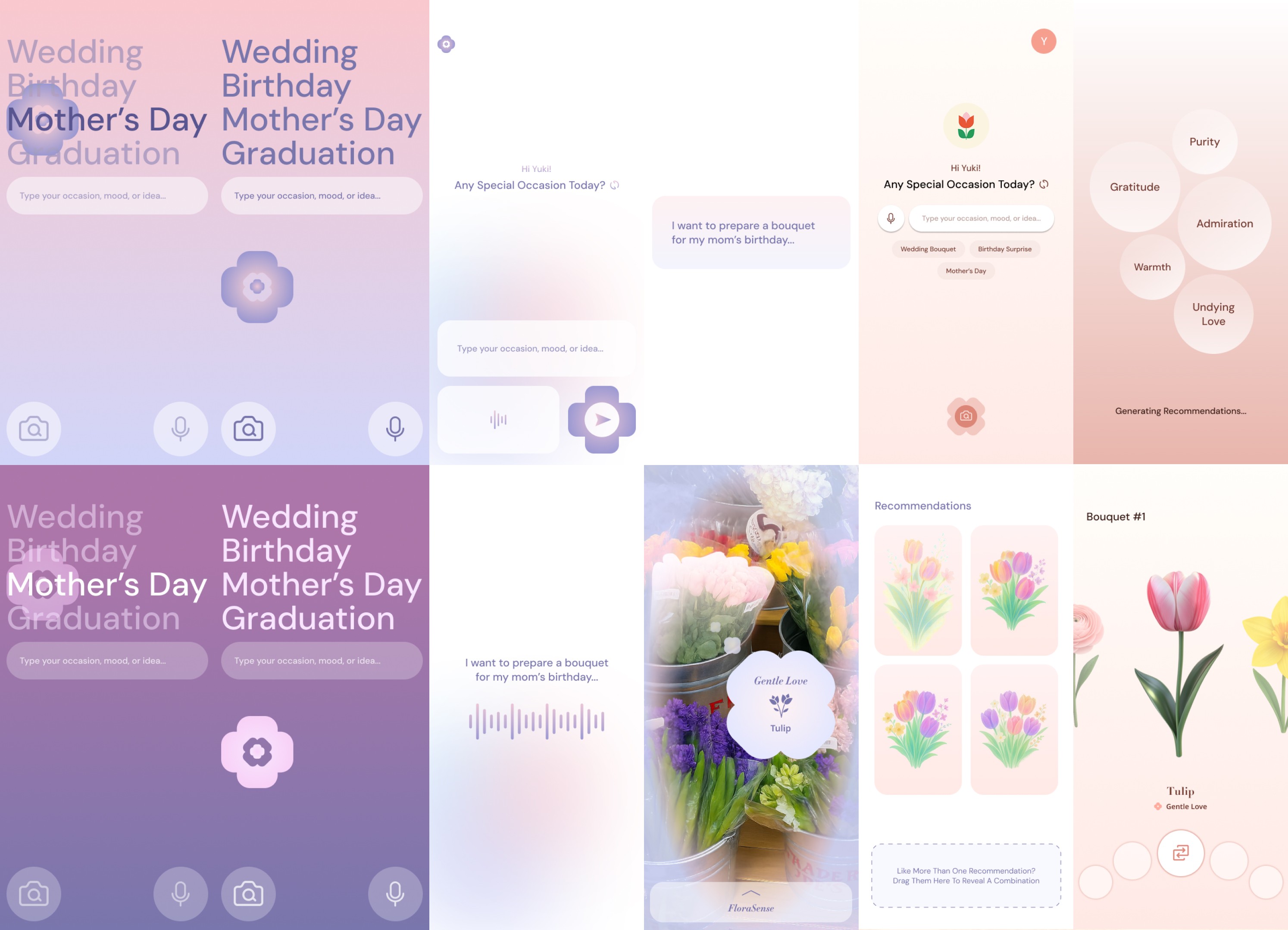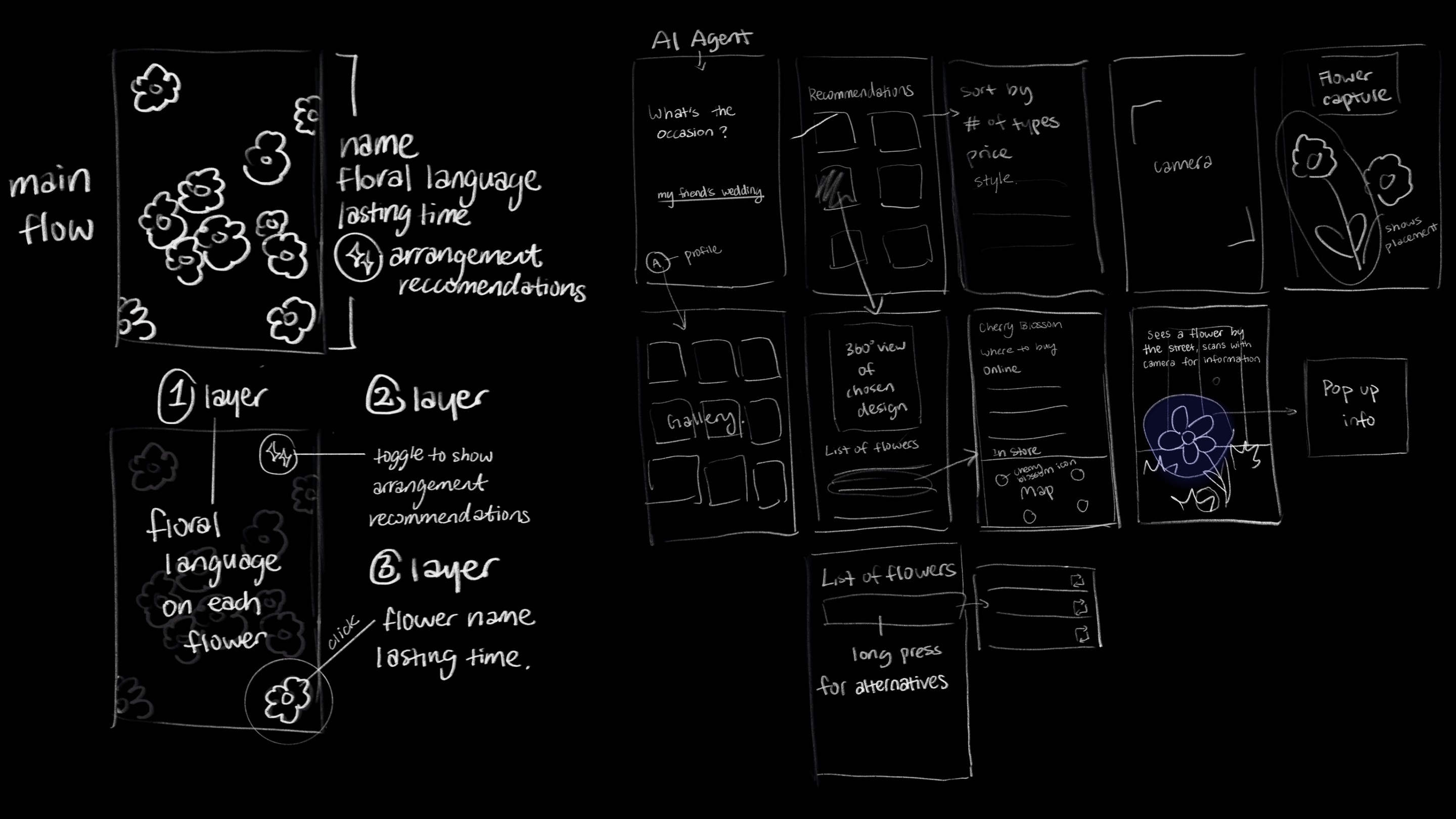 When users encounter flowers in everyday settings such as grocery stores or along the street, FloraCam enables them to identify flower types, understand associated floral meanings, and explore arrangement suggestions with a single tap.